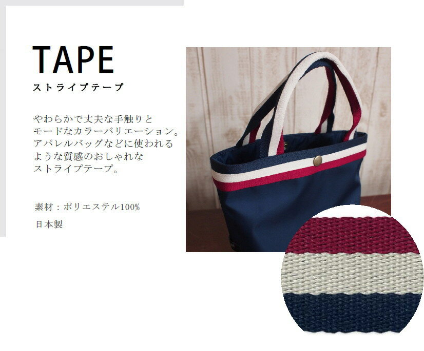アパレルバッグなどに使われるような質感のおしゃれなストライプテープ。