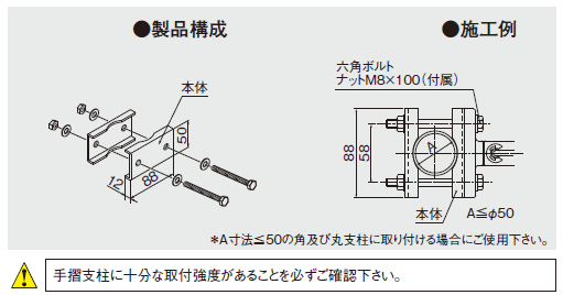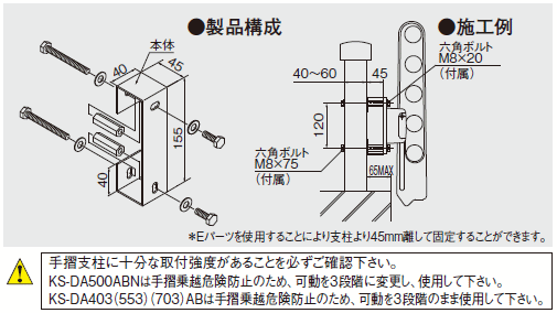 キョーワナスタ 物干金物 取り付けパーツ 【Aパーツ・手摺支柱取付用】 KS-3845APS型 1セット