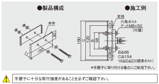 キョーワナスタ 物干金物 取り付けパーツ 【Bパーツ・手摺子取付用】 KS-3845BPS型 1セット