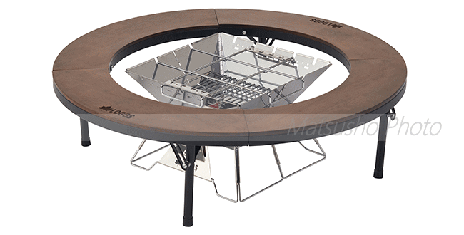 囲炉裏スタイルでたき火やグリルを囲む円形テーブル 人気の囲炉裏テーブルシリーズからサークル型が登場。