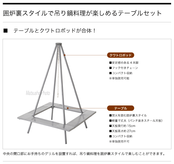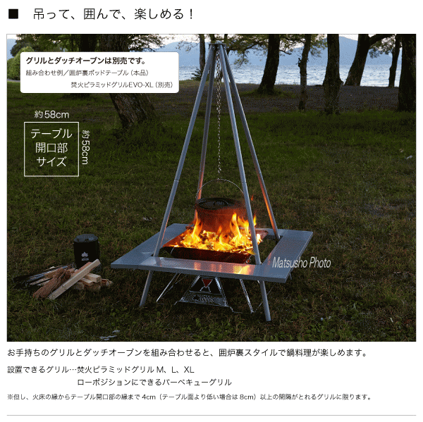 (最終商品ページ更新日:2020年3月16日)LOGOS ロゴス 囲炉裏ポッドテーブル 81064127 ■元祖囲炉裏スタイルの決定版!吊って囲んで楽しめる! ■テーブルとクワトロポッドが合体! ■より軽く、より手軽によりコンパクトに。